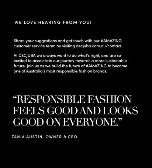 At DECJUBA we are on a mission to become one of Australia’s most responsible fashion labels - as it should be.