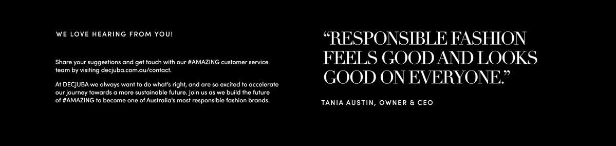 At DECJUBA we are on a mission to become one of Australia’s most responsible fashion labels - as it should be.
