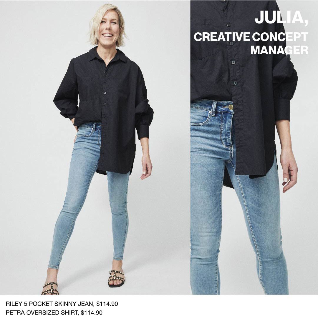“I love my Riley jeans because they are so comfortable to slip on everyday. They have an incredible amount of stretch, they’re easy to put on and so versatile for a busy working mum. I’ve worn my Riley’s through being pregnant, and I’m still wearing them now as an active mum with young kids.”