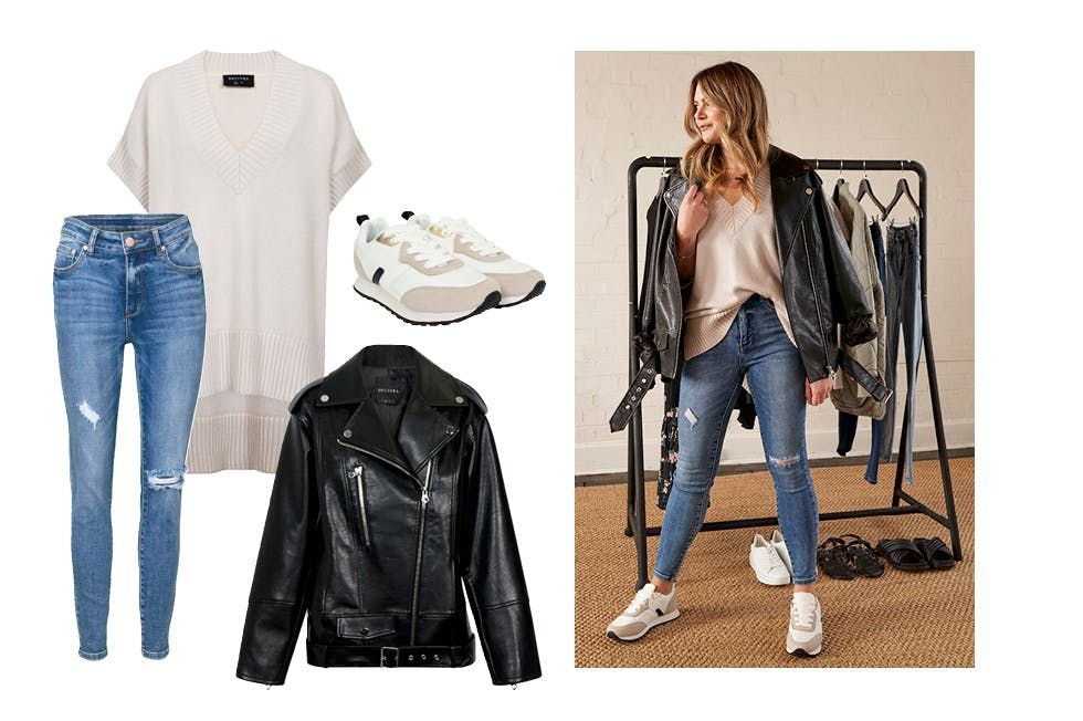 A: "As a busy Mum (and living in Melbourne!) I definitely get this – and for me, it’s all about the layering. Start with a good pair of jeans, add this new knit vest and finish it with a transeasonal jacket."